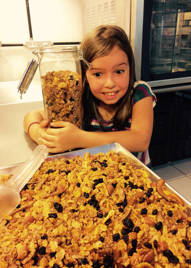 O 8 é o número da prosperidade na cultura chinesa. Assim, lançar nossa granola no dia 8/8/17 (1+7=8!) seria uma coincidência promissora. Mas chovia forte na madrugada do Recife naquele sábado, e quase desisti de ir à feira. Acabei indo. Mas não foi a numerologia que me empurrou pra rua. Foi Mila, minha filha de 8(!) anos, que estava com a mãe naquela semana. Estrear no sábado seguinte, quando ela estivesse comigo, seria submetê-la à disputa de vagas na calçada da praça, logo na primeira feira. Então fui na chuva mesmo. Os deuses chineses estavam atentos e logo o céu se abriu num dia lindo. Quando Mila finalmente foi comigo, na segunda semana, foi bem mais fácil fingir que estava tudo sob controle…